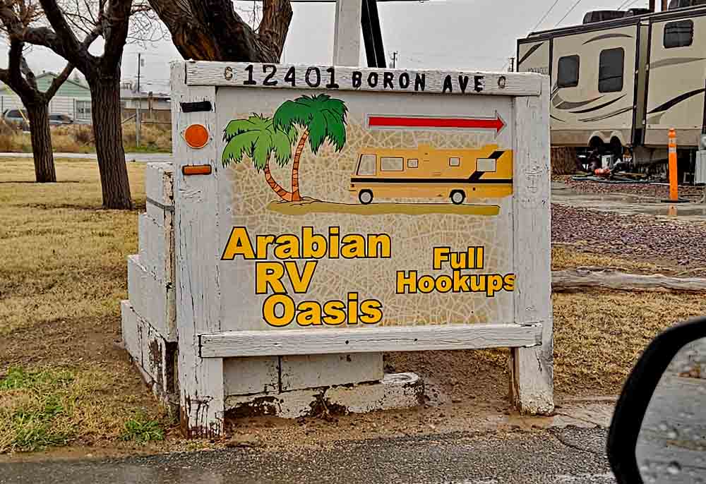 Der Arabien Oasis Campground ist ein nicht sehr attraktiver Campingplatz im nicht sehr attraktiven Städtchen Boron, bei nicht sehr attrraktivem Wetter, der aber alles bietet, was man zwischendurch braucht.