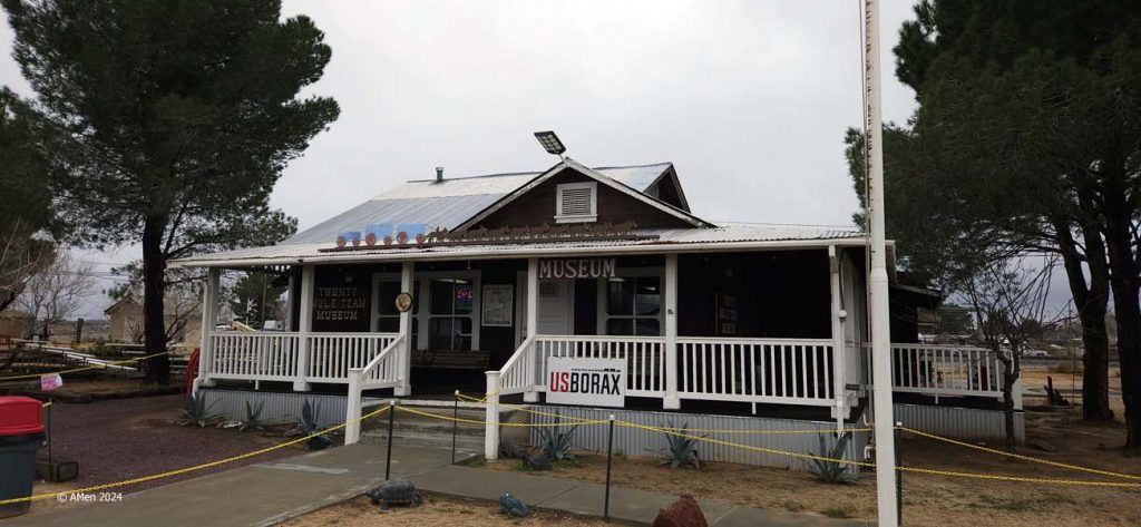 Dafür besuchten wir das Twenty- Mule Team Museum, ein kleines, liebevoll eingerichtetes Museum, das den Boraxabbau und den Borax-Transport dokumentiert, der früher von 20 Mulis bewältigt wurde. (s. auch Death Valley).