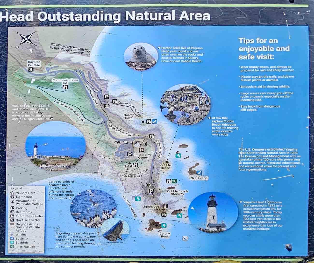 Das Gebiet umfasst etwa 100 Hektar, (also rund 1 Quadratkilometer) und wurde 1980 als „Outstanding Natural Area“ unter Verwaltung des Bureau of Land Management eingerichtet. Auf der Website kann man die besten Zeiten rund um die Ebbe („Tidepool Discovery Times“) zur Beobachtung der Gezeitenbecken erfahren, um, Seesterne, Seeanemonen, Krabben und anderes Getier zu beobachten.