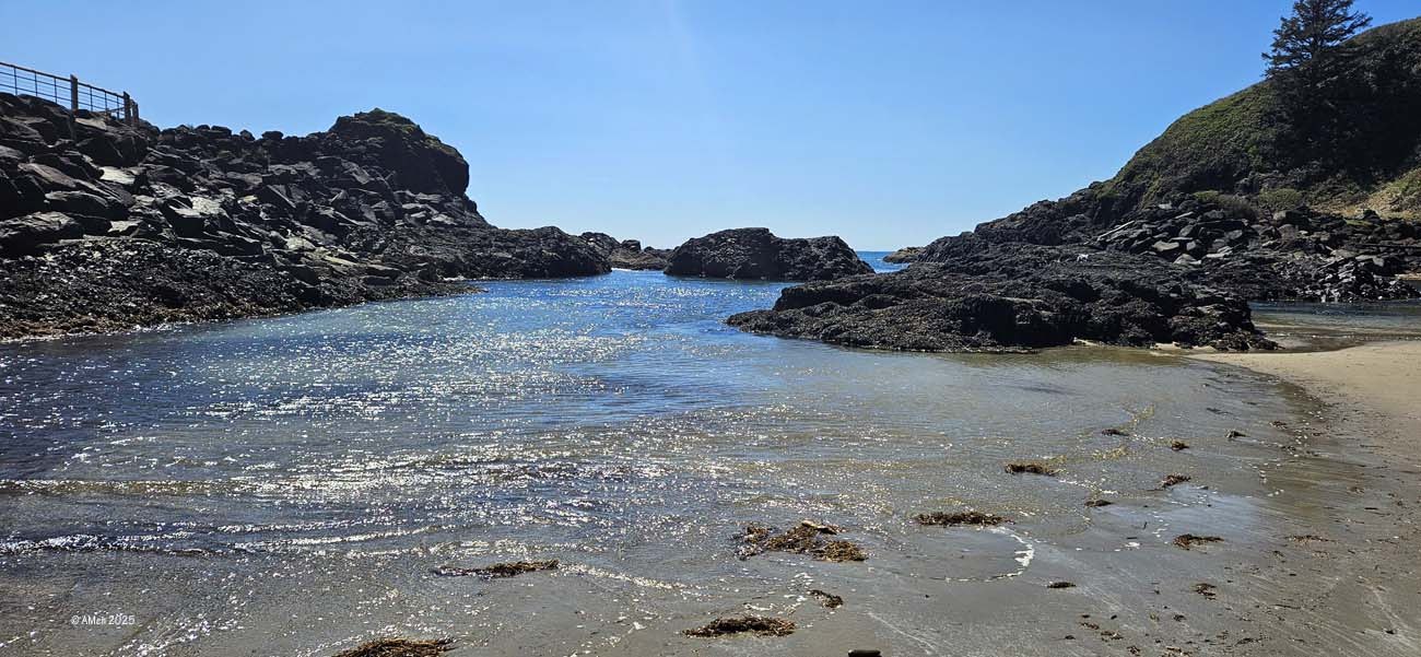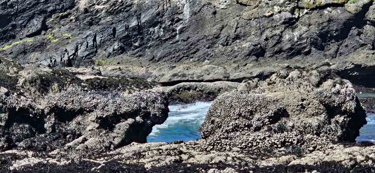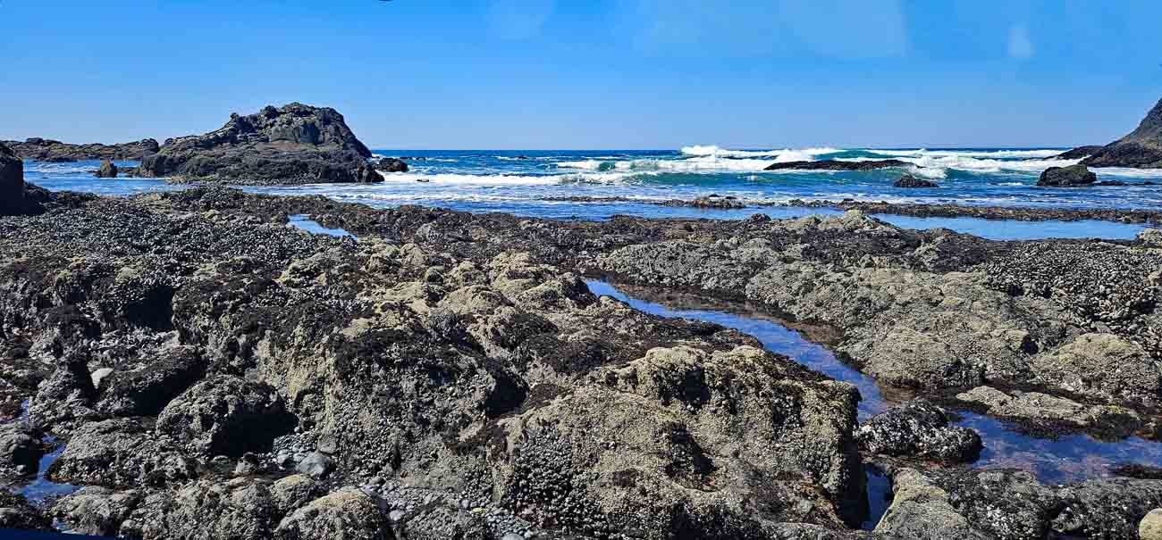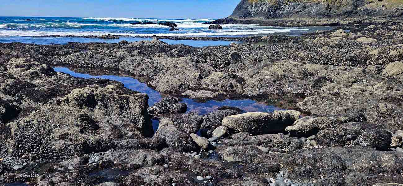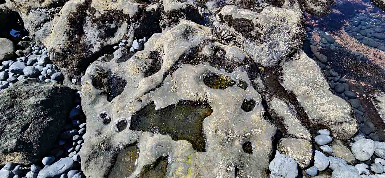 Bei Ebbe entstehen zahlreiche Tidepools, in denen sich Meerwasser in Felsvertiefungen sammelt. Diese Becken bilden eigenständige Mikrolebensräume, die stark von Gezeiten, Temperatur und Wellengang beeinflusst werden.