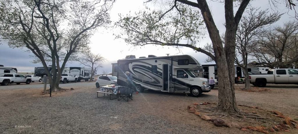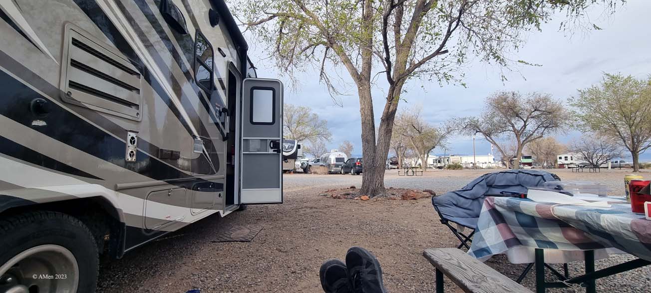 Direkt nebenan befindet sich ein Campingworld und noch ein weiterer Wohnmobilladen, die Old Town ist 14 Kilometer entfernt.