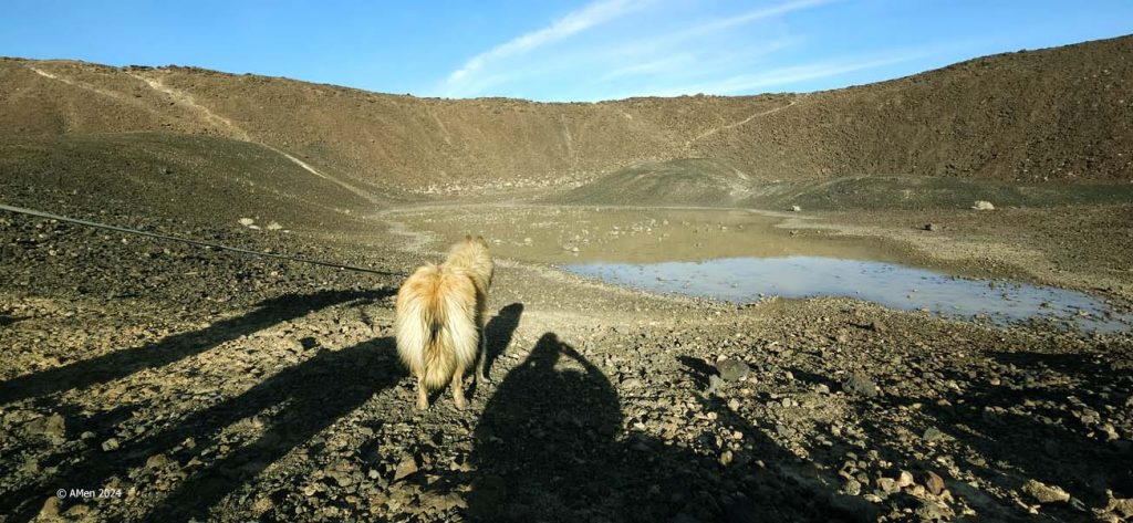 Ein etwa sieben Kilometer langer Weg – auf dem die Hunde mitdürfen – führt zum Krater. Er beginnt harmlos, wenn man dann aber den Krater erreicht, geht es steil bergauf und für mich war es schon recht anstrengend – aber absolut lohnenswert.