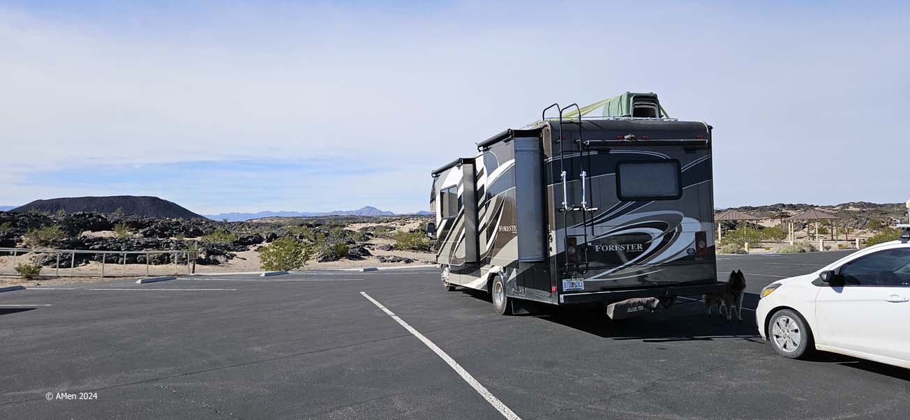 Wir konnten frei auf dem Parkplatz des Amboy Kraters stehen, es ist BLM Land, aber inzwischen geteert und gut ausgebaut, so dass wir zunächst etwas verunsichert waren.