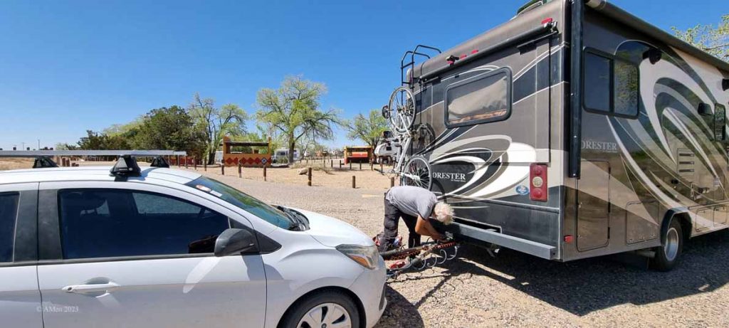 Wir standen aber für 18$ Dry mit einem sehr schönen Blick auf die Berge und den braunen Rio Grande. Allerdings war es von der Straße und vom Zug her etwas laut.