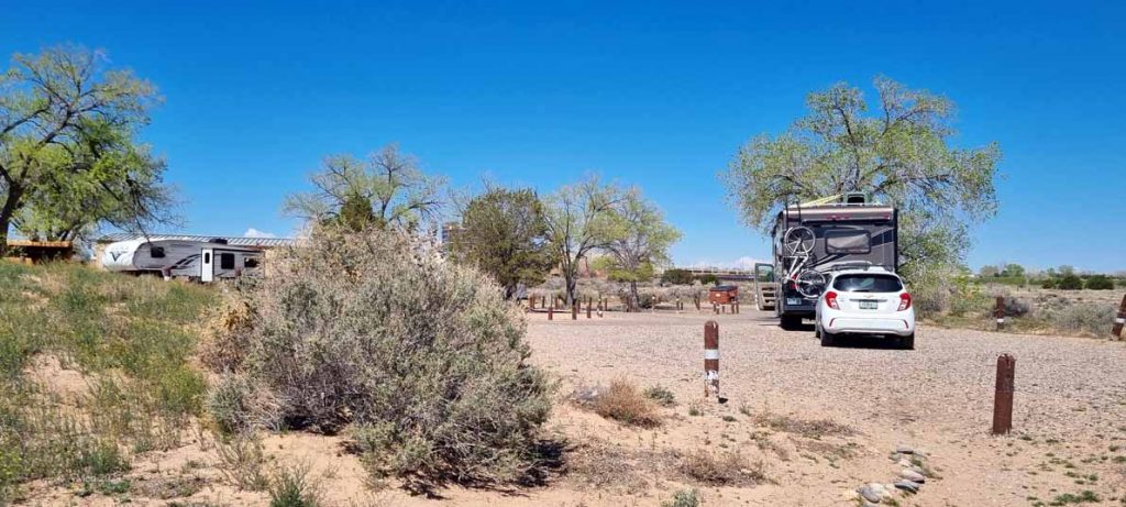 Schöner Statepark Campingplatz, etwa 35 Kilometer nördlich von Albuquerque. Jede HookUp Site hat eine hübsche Hütte, für die man im Sommer sicher sehr dankbar ist.