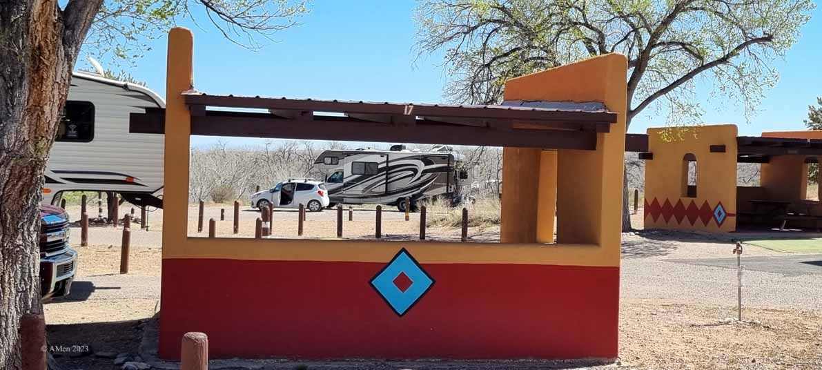 Schöner Statepark Campingplatz, etwa 35 Kilometer nördlich von Albuquerque. Jede HookUp Site hat eine hübsche Hütte, für die man im Sommer sicher sehr dankbar ist.