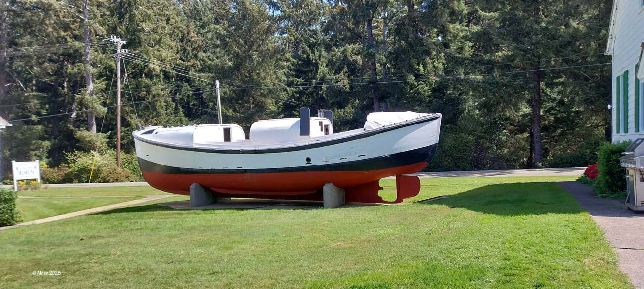 Zwischen Museum und Leuchtturm liegt ein Boot, das Anfang des 20. Jahrhunderts unter anderem für Patrouillenfahrten genutzt wurde.