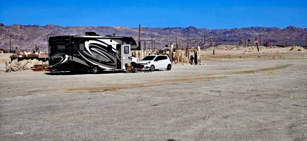 Bisher besuchten wir den Bombay Beach immer nur kurz, dieses Jahr, 2025, hatten wir noch einen Tag bis zu unserer Reservierung auf dem Fountain of Youth, so dass wir uns entschieden, eine Nacht direkt am Strand von Bombay Beach zu verbringen.