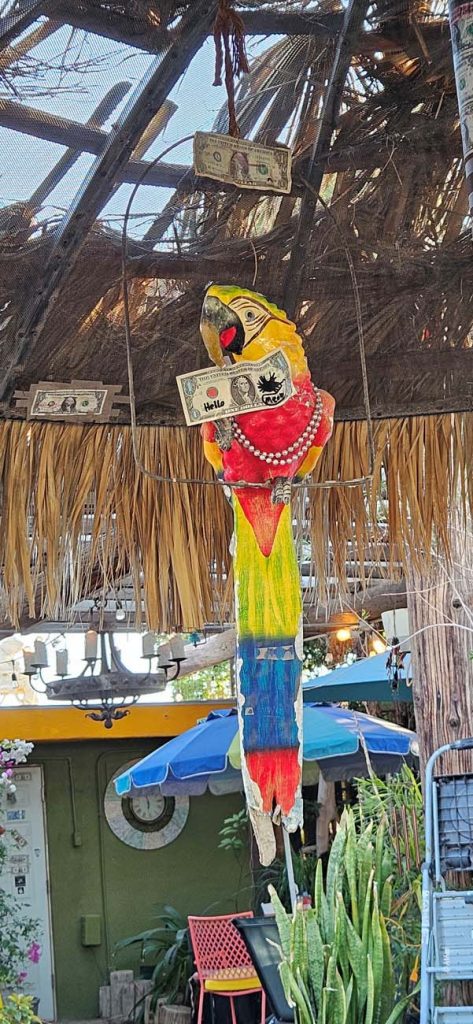 Am Ortseingang von Bombay Beach gibt es eine gute Kneipe, das Ski Inn. Die Wände sind voll mit Dollarscheinen, auf denen auch wir uns mit einem „Buck“ verewigt haben.