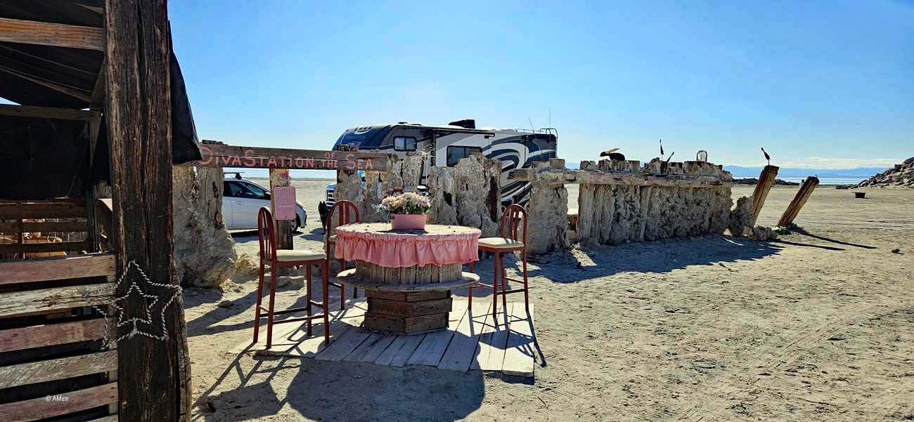 Bisher besuchten wir den Bombay Beach immer nur kurz, dieses Jahr, 2025, hatten wir noch einen Tag bis zu unserer Reservierung auf dem Fountain of Youth, so dass wir uns entschieden, eine Nacht direkt am Strand von Bombay Beach zu verbringen.