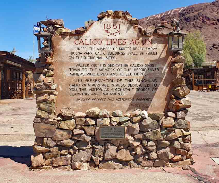 Walter Knott erwarb Calico in den 1950er Jahren und restaurierte bis auf die fünf ursprünglichen Gebäude alle so, wie sie in den 1880er Jahren aussahen. Calico wurde zur State Historical Landmark und wurde 2005 vom damaligen Gouverneur Arnold Schwarzenegger zur California’s Silver Rush Ghost Town erklärt.