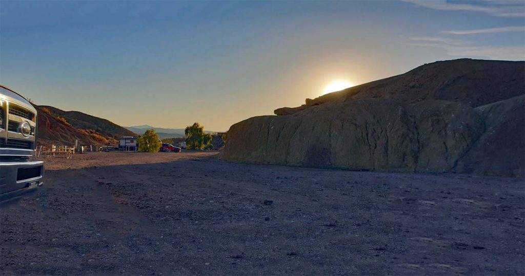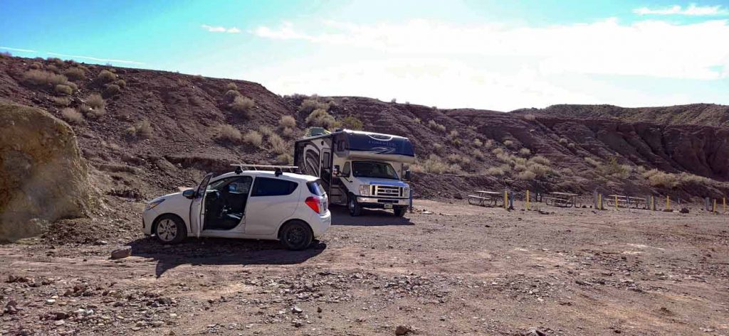 Ungeplant, auf der Suche nach einer Dumpmöglichkeit legten wir im Februar 2024 noch einmal eine Nacht auf dem Calico Ghosttown Campingplatz ein. Wir wählten den hintersten Platz B18 im „HookUp Canyon“ und hatten sehr viel Platz.
