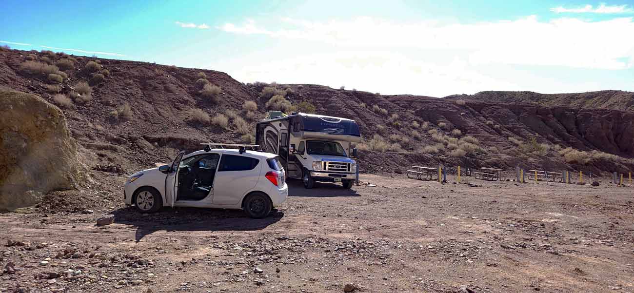 Ungeplant, auf der Suche nach einer Dumpmöglichkeit legten wir im Februar 2024 noch einmal eine Nacht auf dem Calico Ghosttown Campingplatz ein. Wir wählten den hintersten Platz B18 im „HookUp Canyon“ und hatten sehr viel Platz.