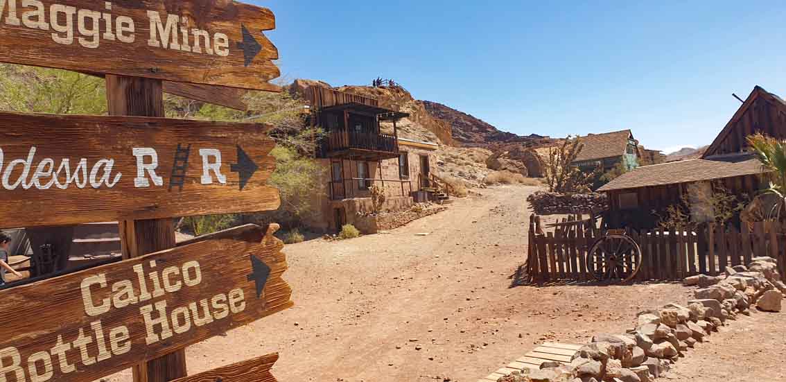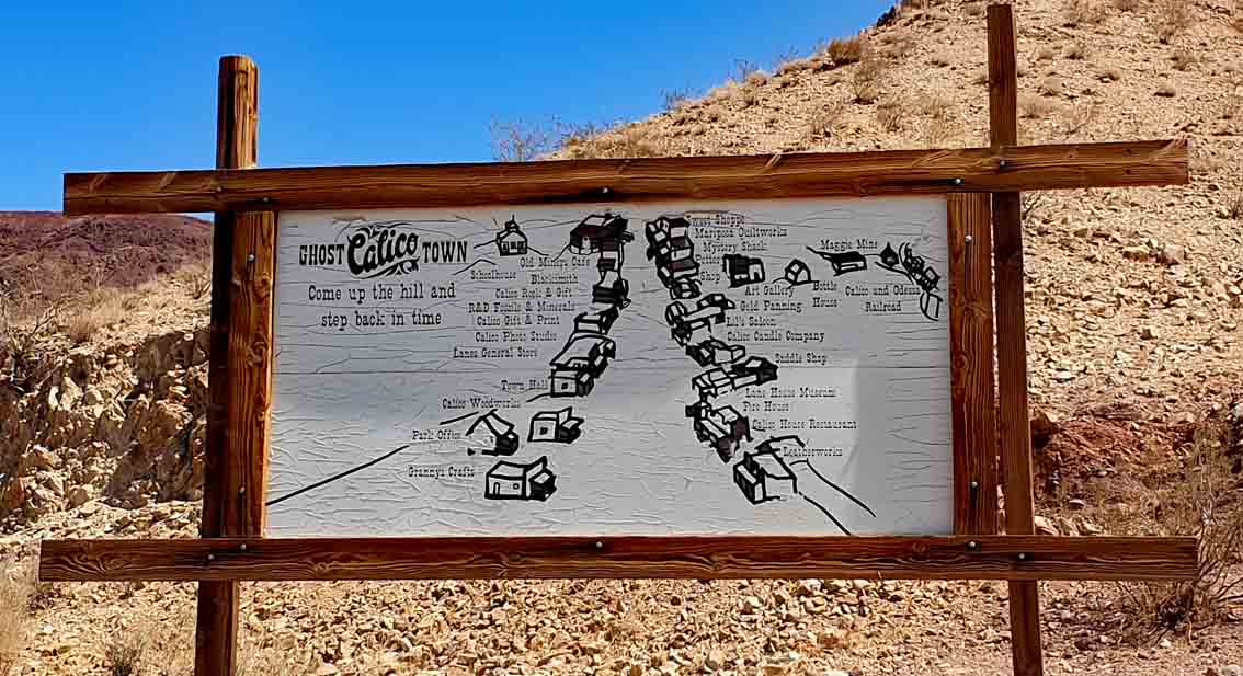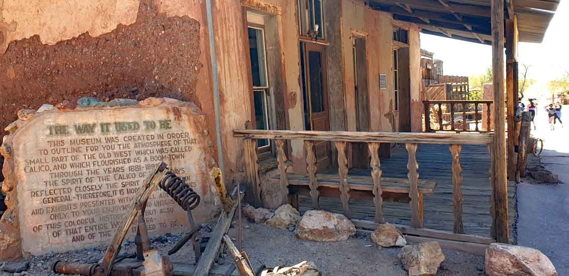 Calico ist eine Bergbaustadt, die1881 gegründet und 1890 aufgegeben wurde, nachdem das Silber an Wert verlor.