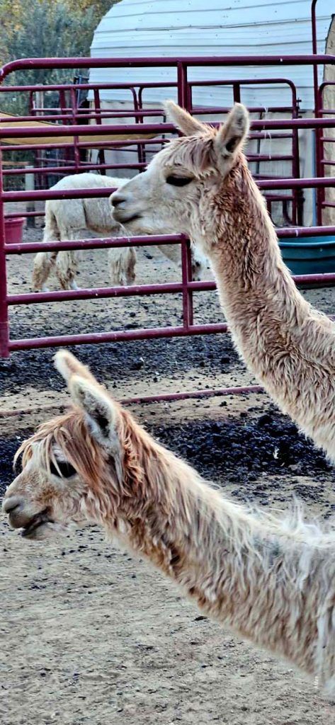Mike und Julianne sind ausgesprochen nett: 2018 haben sie sich ihren Traum erfüllt und eine kleine Farm gekauft, auf der sie Alpacas halten – nicht züchten, wie Julianne erzählte – aber ab und zu springt mal ein Alpacabub über den Zaun und sorgt für Nachwuchs.