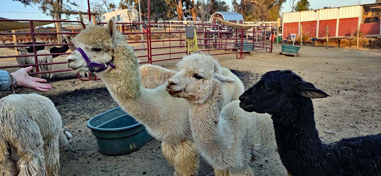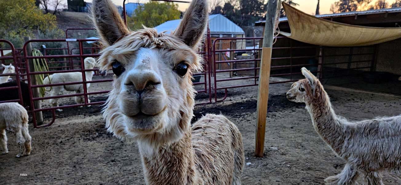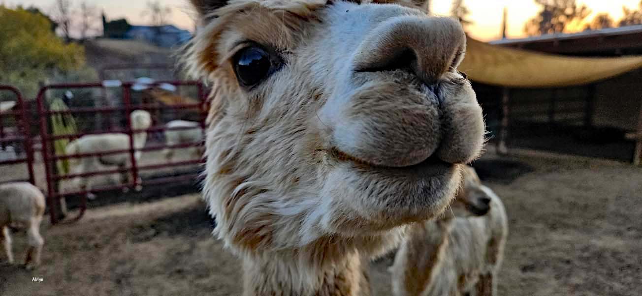 Mike und Julianne sind ausgesprochen nett: 2018 haben sie sich ihren Traum erfüllt und eine kleine Farm gekauft, auf der sie Alpacas halten – nicht züchten, wie Julianne erzählte – aber ab und zu springt mal ein Alpacabub über den Zaun und sorgt für Nachwuchs.