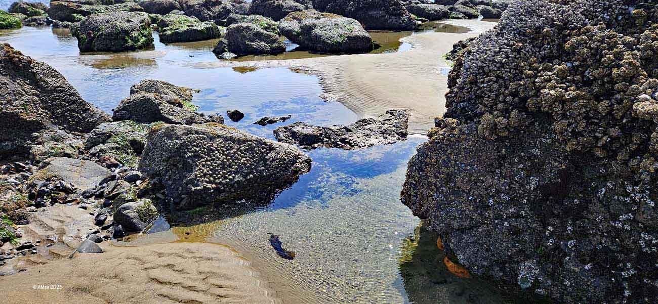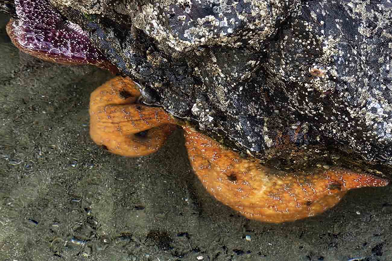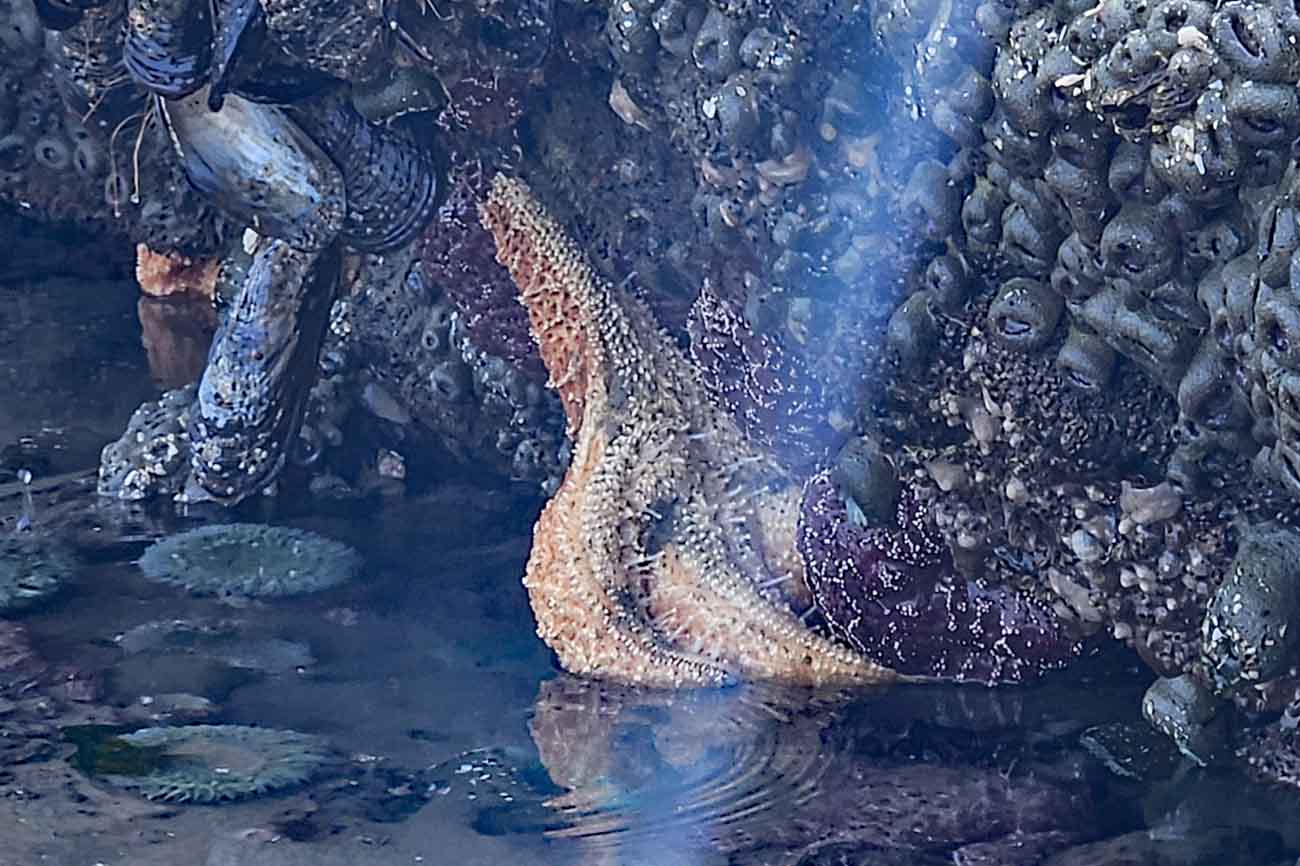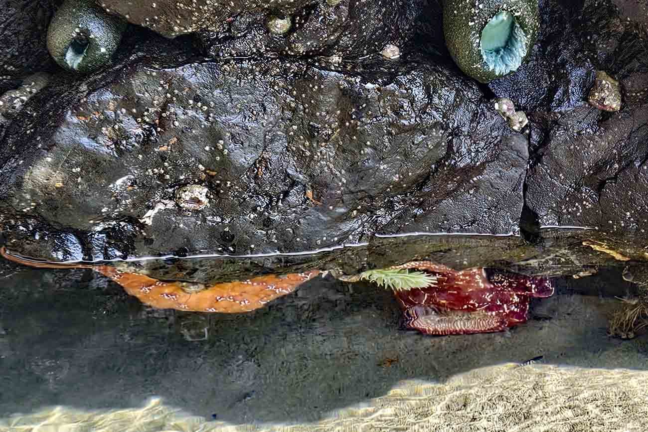 Dort tummeln sich Seesterne in Lila und Pink, Seeanemonen, Einsiederkrebse, Schnecken und manchmal sogar ein Oktopus (wenn er Lust hat).