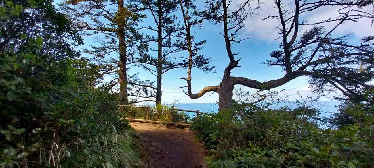 Der Cape Trail ist länger aber weniger steil und führt spektakulär über den , schmalen Bergrücken des Capes bis zur Spitze mit Panoramablick auf den Pazifik,