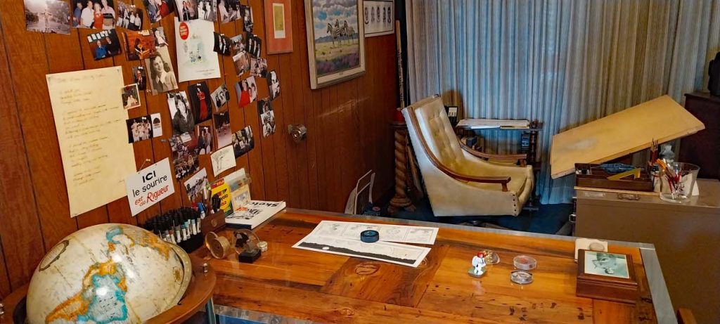 Die Ausstellung zeigt diesen Raum originalgetreu: mit Schreibtisch, Bücherregalen und dem gesamten Umfeld.