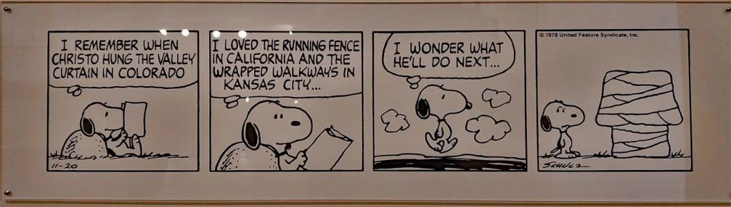 Besonders gefallen hat mir persönlich die Comicsequenz, in der Snoopy’s Hundehütte von Christo verpackt wird – eine witzige Hommage, die ich vorher nicht kannte und die mich sofort angesprochen hat, da mich das Thema ohnehin interessiert.