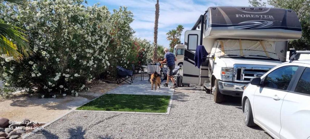 Wichtig: Unbedingt den Eliteplatz nehmen, er kostet nur 10 $ mehr, mit Passport America nur 5, dafür steht man auf einem wesentlich schönere Platz, mit Abtrennung FHU kleiner „Grünfläche“