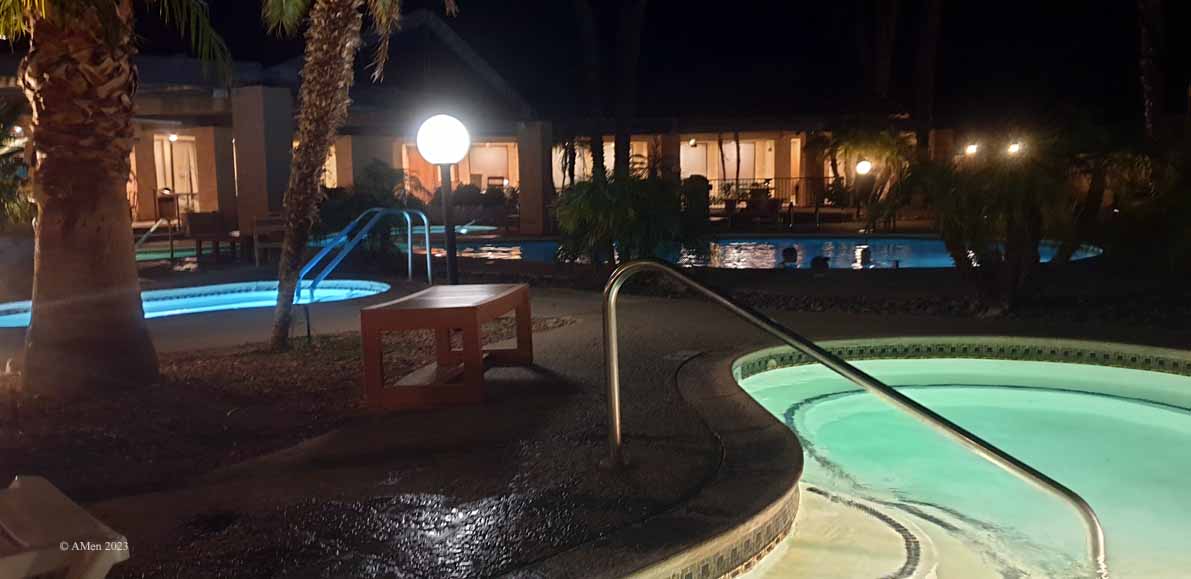 Er ist um einiges größer als der Caliente, hat zwei großzügige Poollandschaften und ist, im Gegensatz zu diesem, kein 55+ Platz. Der Caliente hat uns besser gefallen, da er nicht ganz so groß ist – und etwas ruhiger.