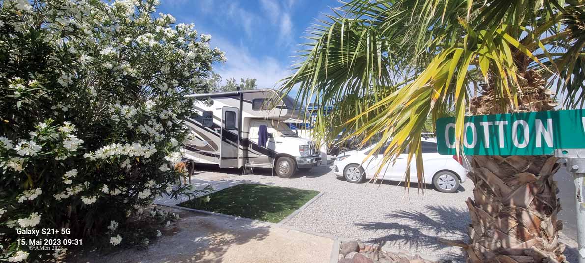 Wichtig: Unbedingt den Eliteplatz nehmen, er kostet nur 10 $ mehr, mit Passport America nur 5, dafür steht man auf einem wesentlich schönere Platz, mit Abtrennung FHU kleiner „Grünfläche“