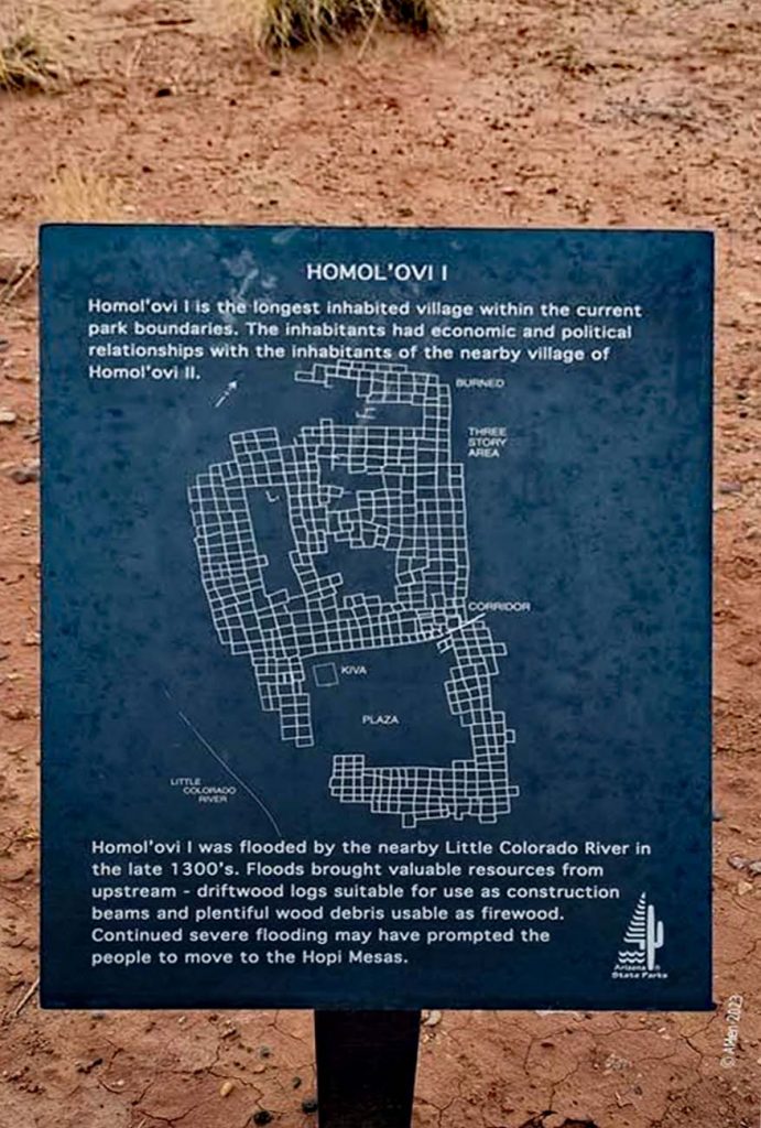 Homolovi I, die älteste und größte Ruine im Park, stammt aus etwa 1260 n. Chr. Sie besteht aus mehreren Raumblöcken und einem zentralen Platz, was auf eine komplexe und organisierte Gemeinschaft hinweist.