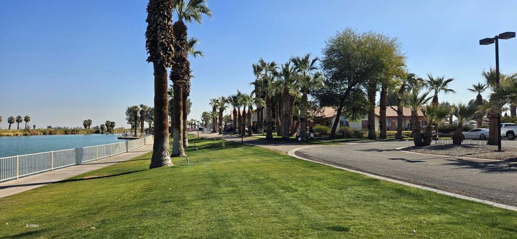 Die Anlage ist ganz angenehm, gut ausgestattet, nur eine Bar wie im knapp drei Kilometer entfernten Rio Bend RV Resort, sucht man hier vergeblich. Zwar liegt das Resort direkt an einem kleinen See, und es gibt Stellplätze direkt am Wasser, allerdings sind diese ausschließlich mit Cabins belegt, was den Zugang zum See stark einschränkt.