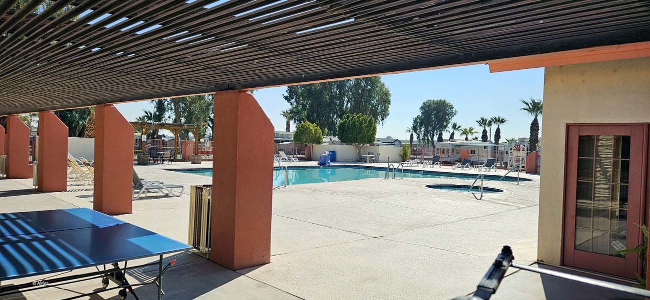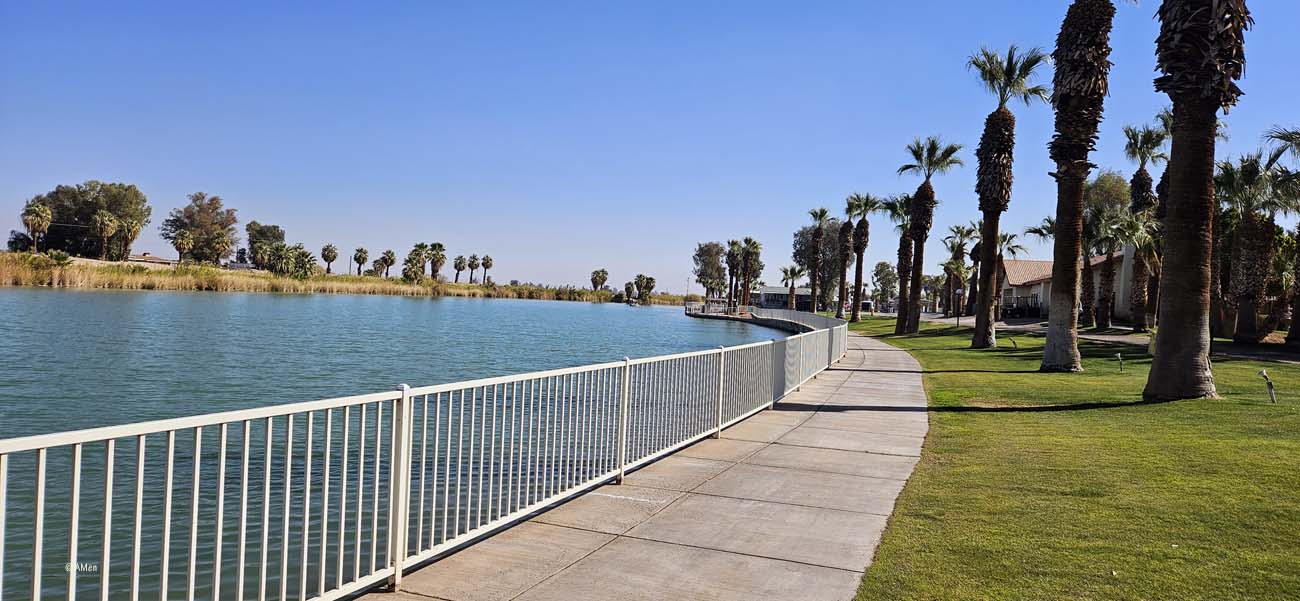 Die Anlage ist ganz angenehm, gut ausgestattet, nur eine Bar wie im knapp drei Kilometer entfernten Rio Bend RV Resort, sucht man hier vergeblich. Zwar liegt das Resort direkt an einem kleinen See, und es gibt Stellplätze direkt am Wasser, allerdings sind diese ausschließlich mit Cabins belegt, was den Zugang zum See stark einschränkt.