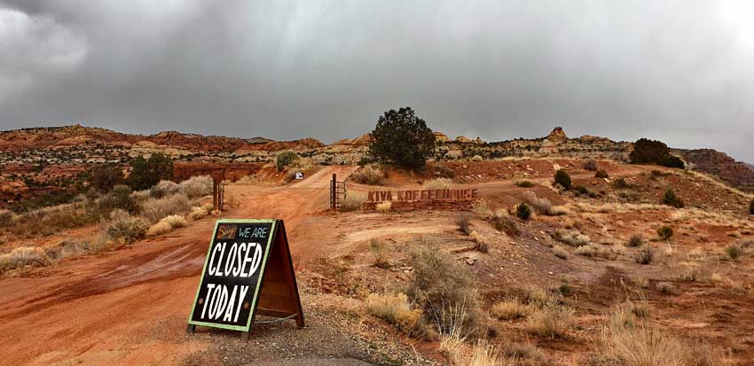 Das vielgerühmte Kiva Koffeehouse (7386 Hwy 12 Mile Marker, Escalante, UT 84726) am Highway 12 war leider geschlossen, entweder wie so viele Restaurants wegen Covid, vielleicht aber auch noch „Closed for the season“.