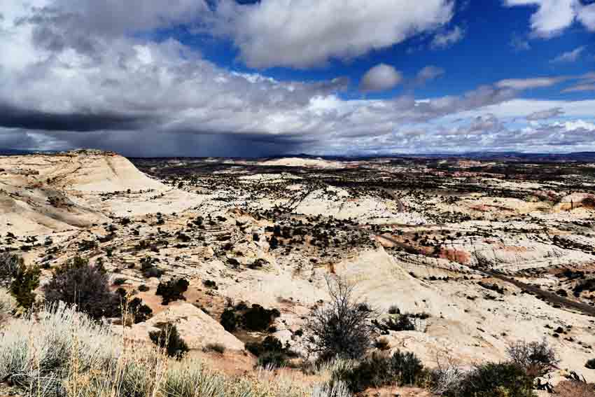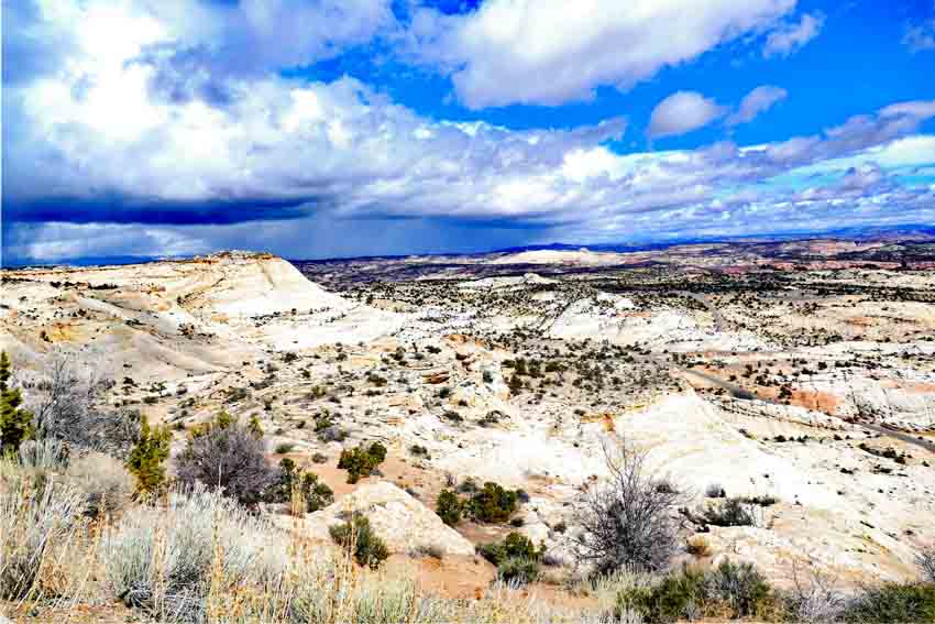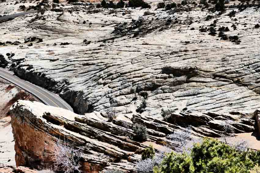 Dieses Mal fuhren wir die Strecke vom Capitol Reef zum Escalante Petriefied Forest zwar wieder bei hohem Schnee am Straßenrand, aber immerhin bei wunderschönem Wetter.