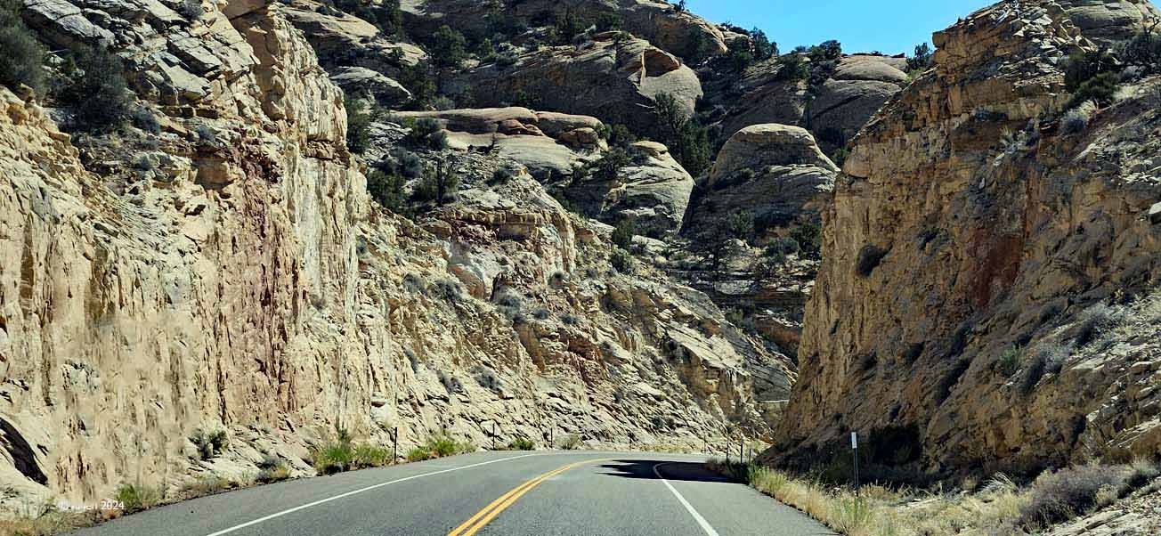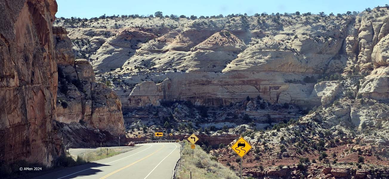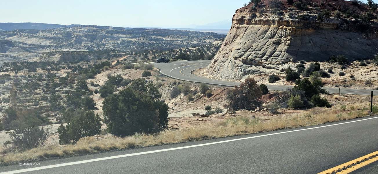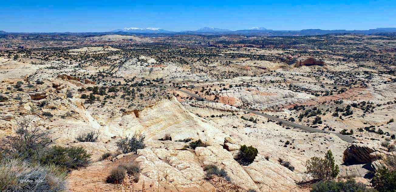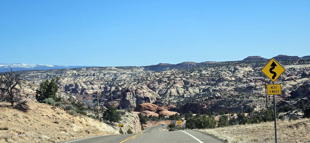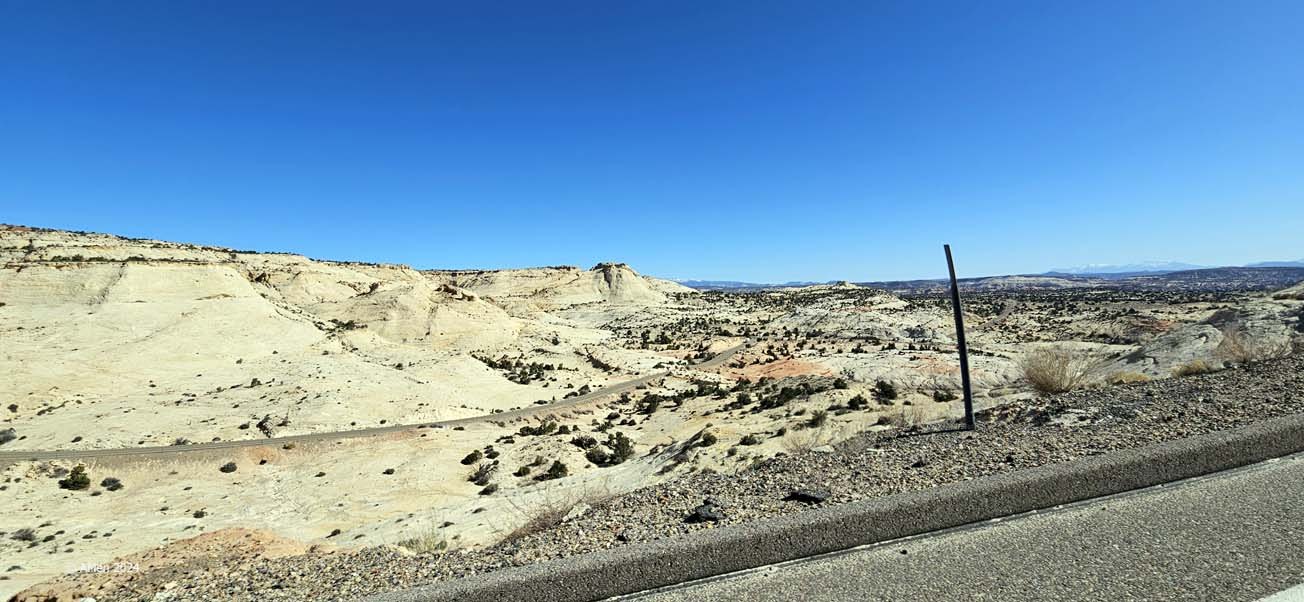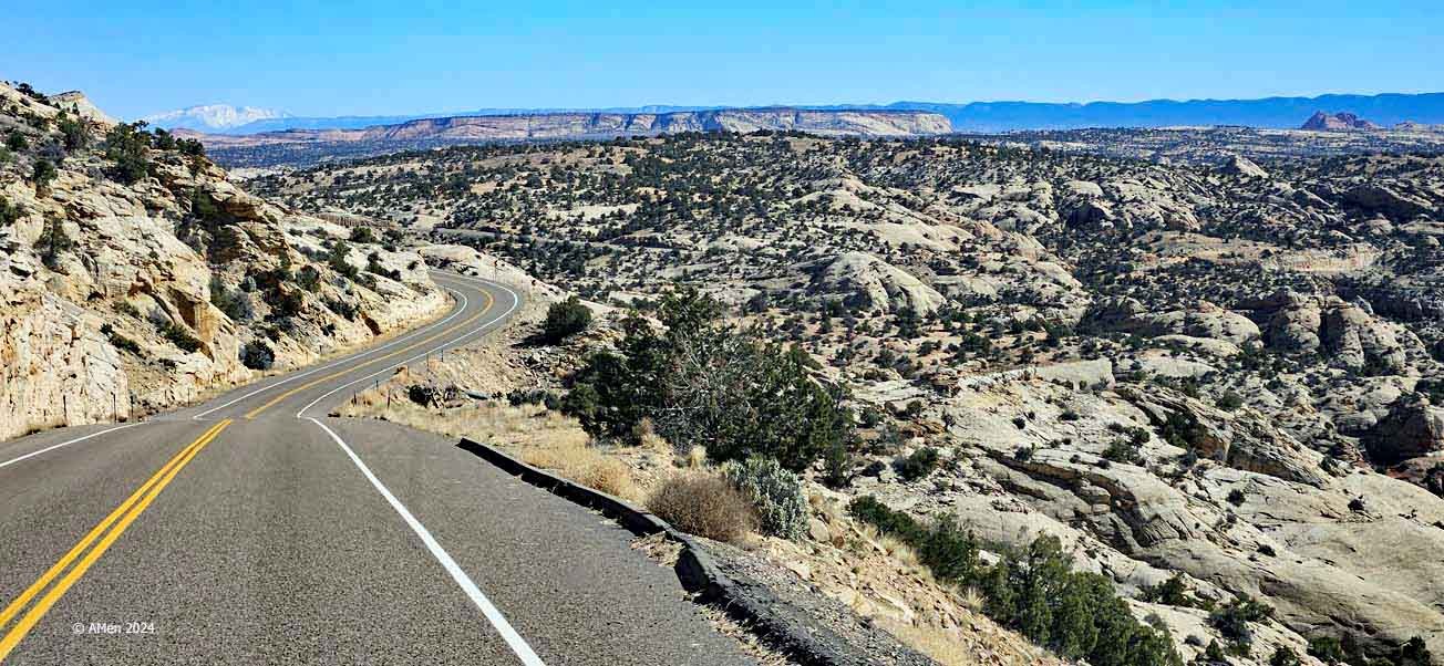 Dieses Mal fuhren wir die Strecke vom Capitol Reef zum Escalante Petriefied Forest zwar wieder bei hohem Schnee am Straßenrand, aber immerhin bei wunderschönem Wetter.