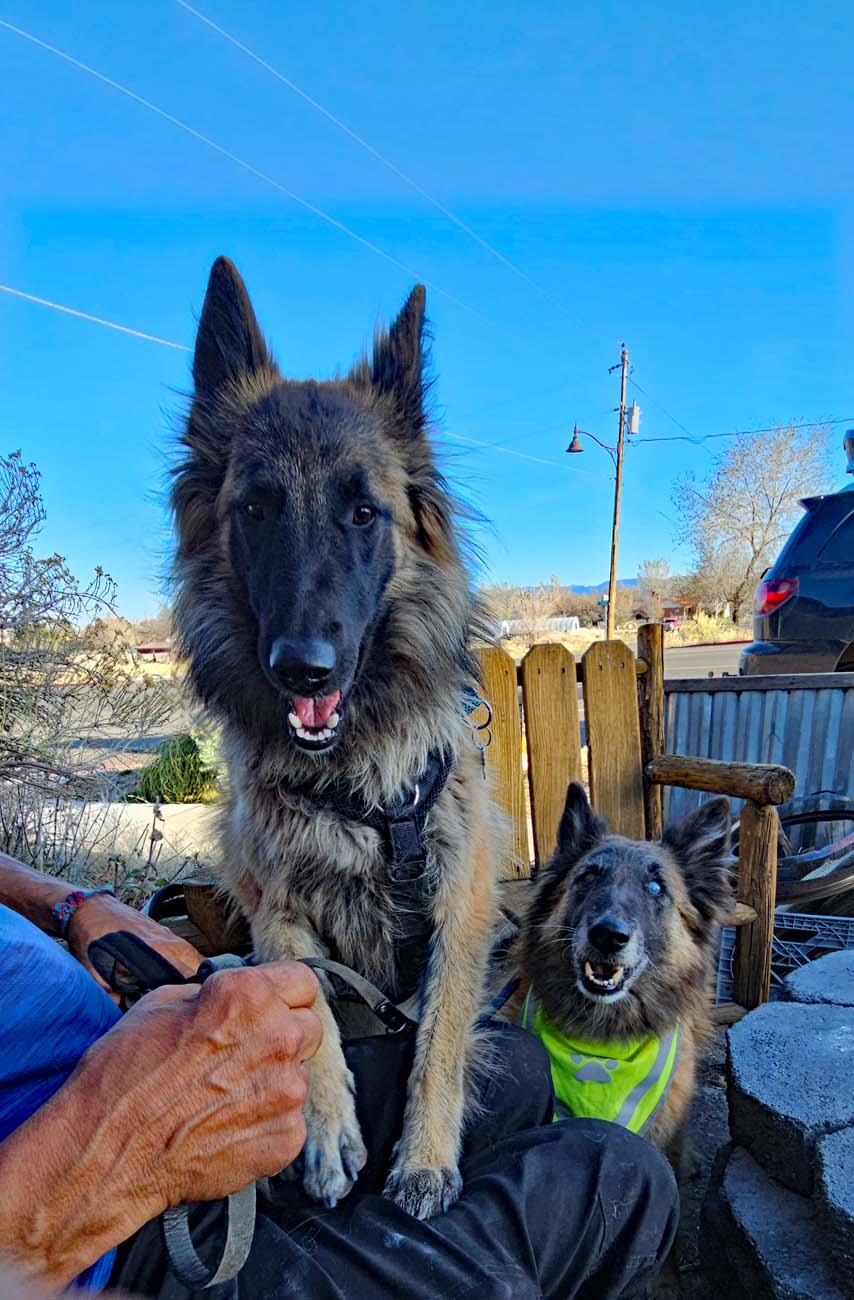 Wir saßen mit unseren Hunden sehr schön draußen, aber auch innen sitzt man toll, mit einem fantastischen Blick auf die Berge.