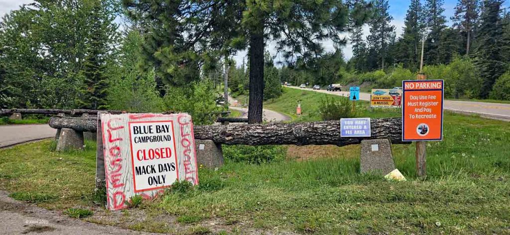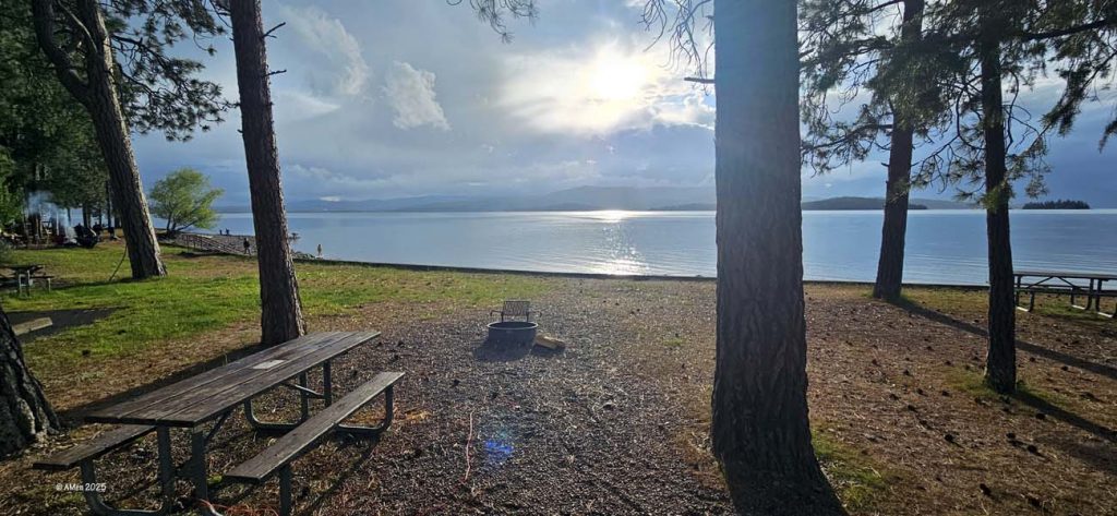Knapp 20 Kilometer nördlich vom Finley liegt der von den Confederated Salish & Kootenai Tribes betriebene Blue Bay Campground .Er verfügt über 48 Stellplätze für Zelte und Wohnmobile mit Sanitäranlagen mit Duschen und Toiletten. Geöffnet ist er von von Mai bis September, aber als wir uns in der Gegend aufhielten war er geschlossen.
