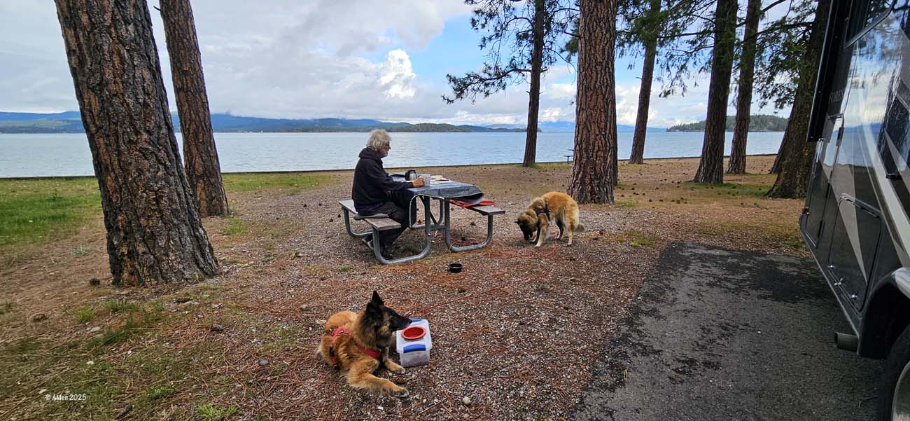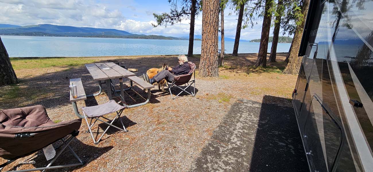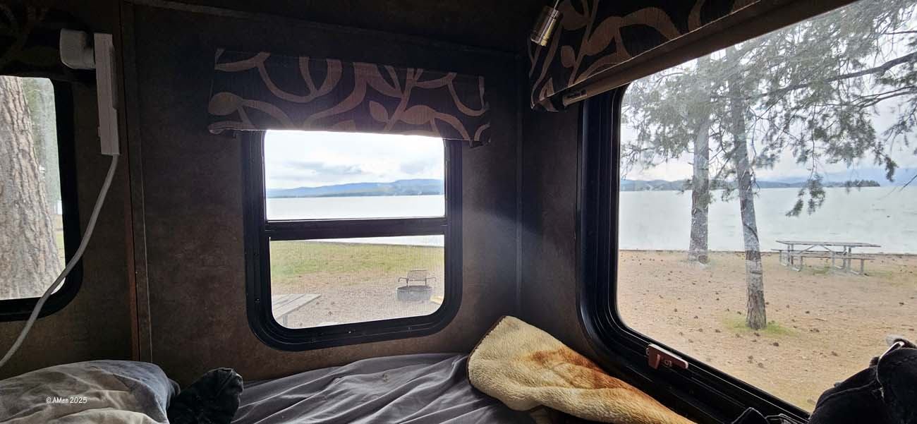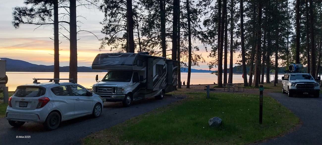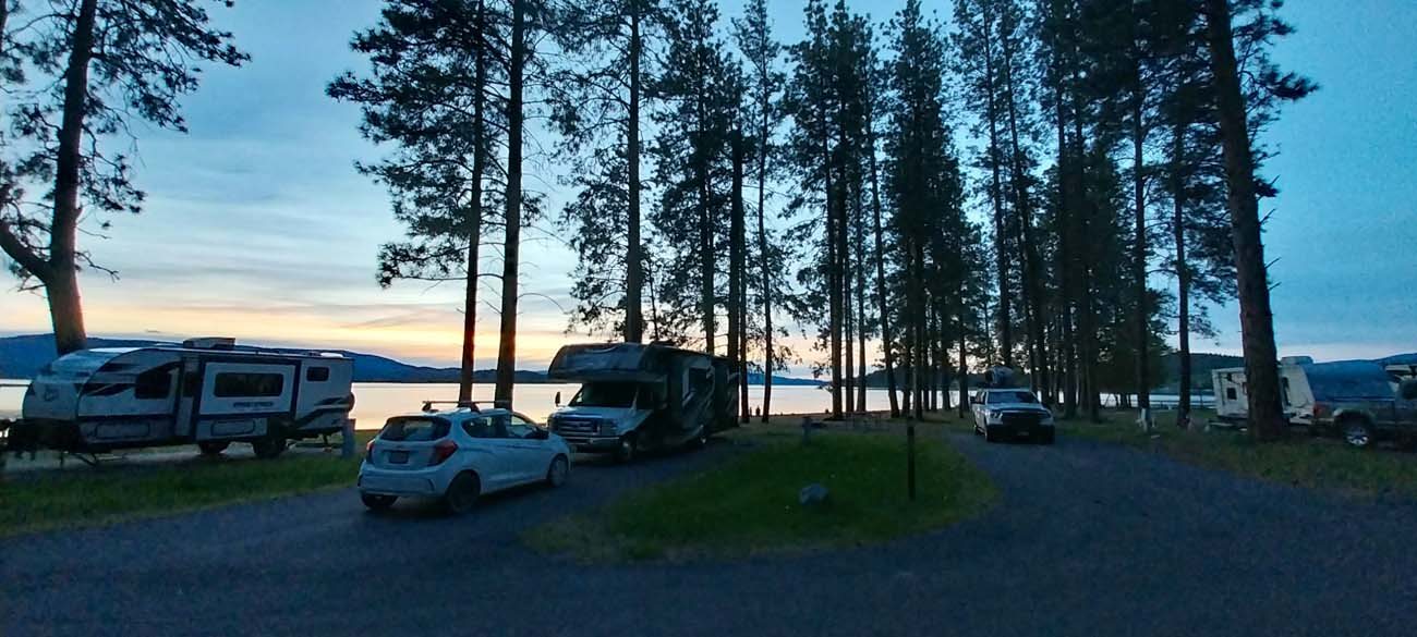 Knapp 20 Kilometer nördlich vom Finley liegt der von den Confederated Salish & Kootenai Tribes betriebene Blue Bay Campground .Er verfügt über 48 Stellplätze für Zelte und Wohnmobile mit Sanitäranlagen mit Duschen und Toiletten. Geöffnet ist er von von Mai bis September, aber als wir uns in der Gegend aufhielten war er geschlossen.
