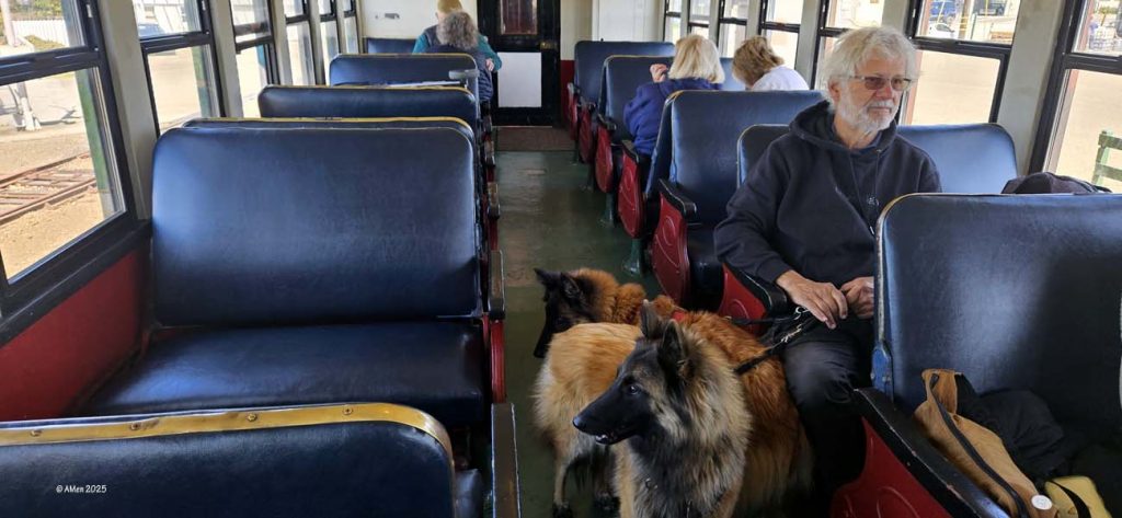 Es gibt außer den geschlossenen einen offenen Wagen, der natürlich für die Aussicht interessanter ist.