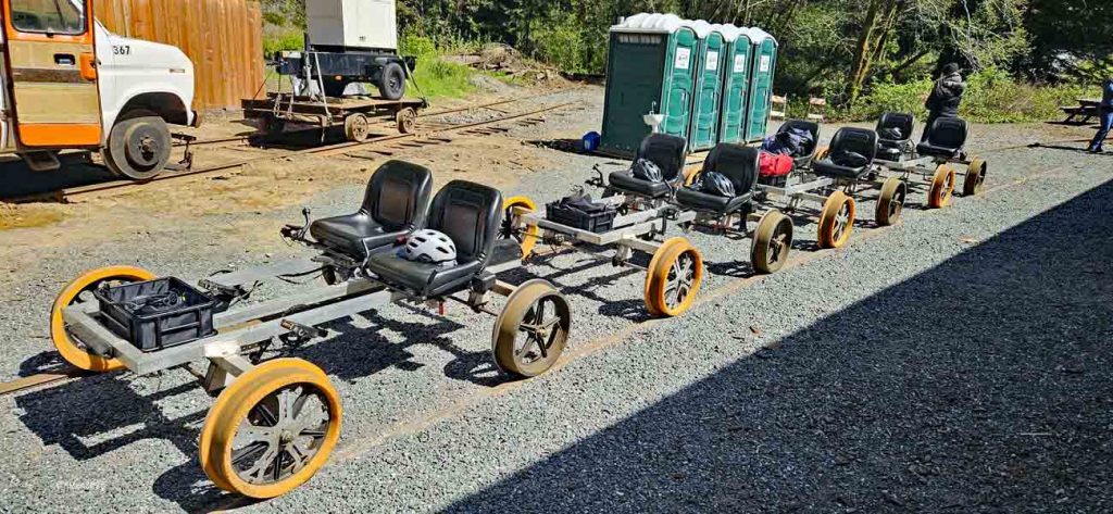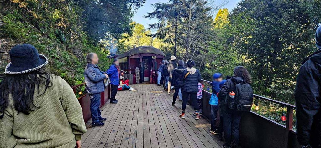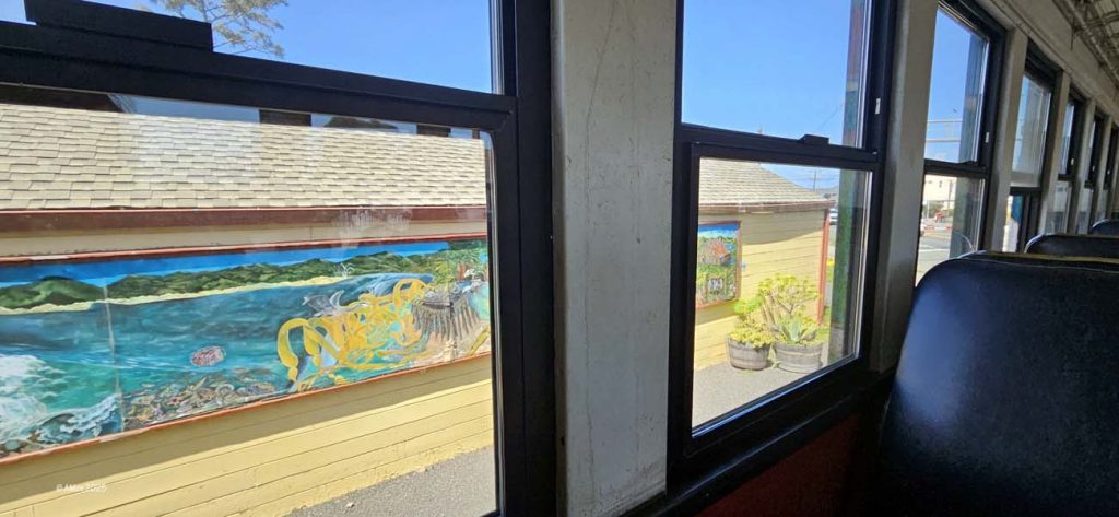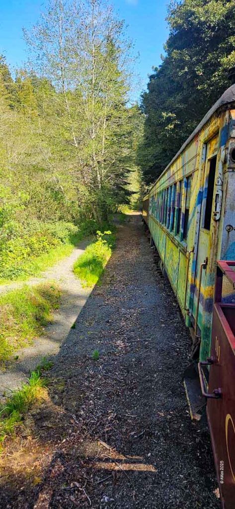 Sehr empfohlen wird eine Tour mit dem Skunk Train, der von Fort Bragg aus startet. Allerdings nahmen wir nur den kurzen „Pudding Creek Express“, eine schöne Fahrt von etwa 7 Meilen hin und zurück entlang des Pudding Creek Estuary. Insgesamt 90 Minuten dauerte die Tour, eine knappe halbe Stunde hin durch uralte Redwood Wälder, eine halbe Stunde Aufenthalt an der „Endstation“ Glen Blair Junction, mit Möglichkeit zum Spazierganz und wieder zurück.