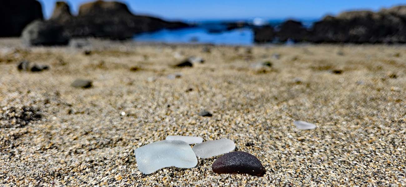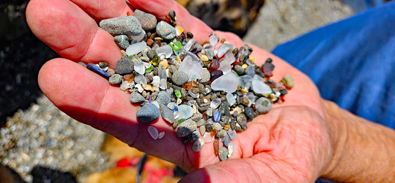 Vom Glas Beach haben wir etwas mehr erwartet: mehrere Strandabschnitte, die früher als Müllhalde verwendet wurden. Das Glas wurde zurückgespült und hat sich zu mehr oder weniger großen Glassteinen abgeschliffen.