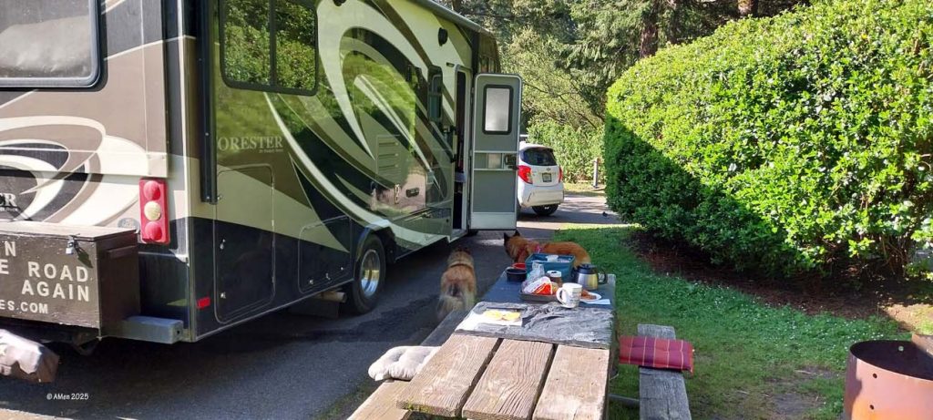 Unsere Entscheidung, auf dem Harris Beach und dem Humbug Statepark jeweils nur eine Nacht zu verbringen, hat sich im Nachhinein als nicht als allzu chic erwiesen. Zwar ist der Humbug ebenfalls ein sehr schöner, grüner, ruhiger Park – ein wenig hört man im vorderen Teil Straßenverkehr – aber im Nachhinein, hat mir der Harris, obwohl er über das Wochenende lauter und voller war durch den interessanten Strand besser gefallen.