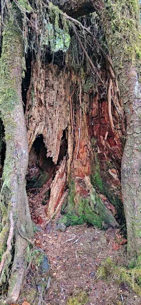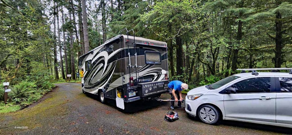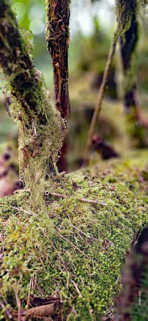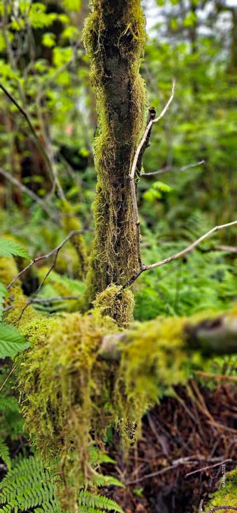 Auf jeden Fall standen wir sehr schön unter hohen, mit Moos bewachsenen Bäumen… Rainforest eben.
