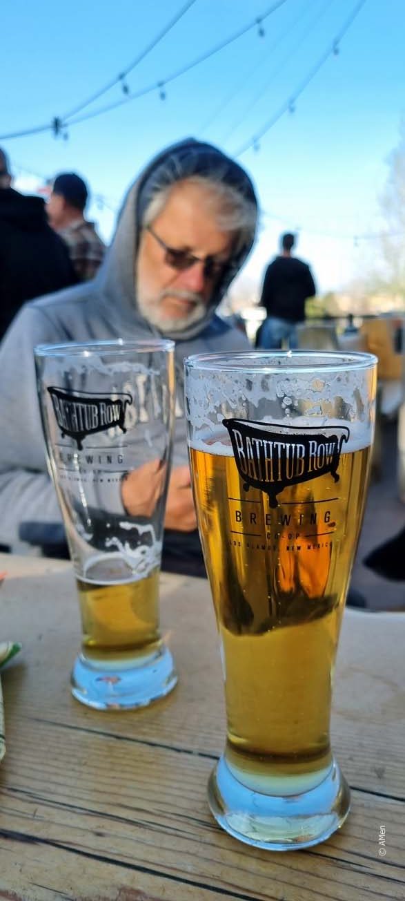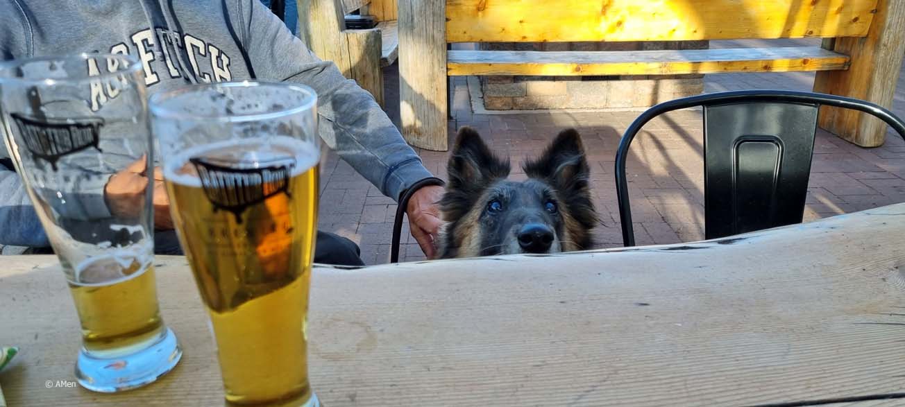 Das Wohnmobil steht direkt neben dem Biergarten, das Bier ist gut und Essen kann man sich in nahegelegenen Restaurants holen oder bringen lassen. Am zweiten Tag stand auch ein Futterwagen nebenan.