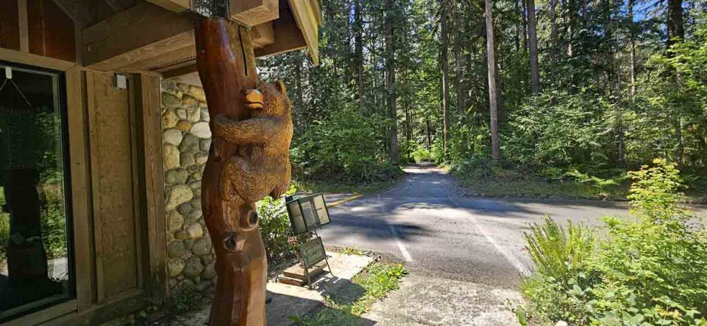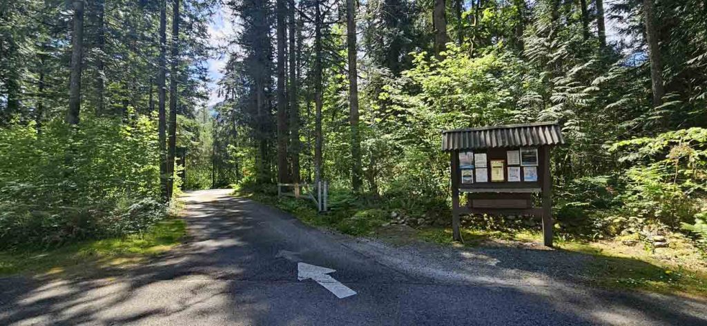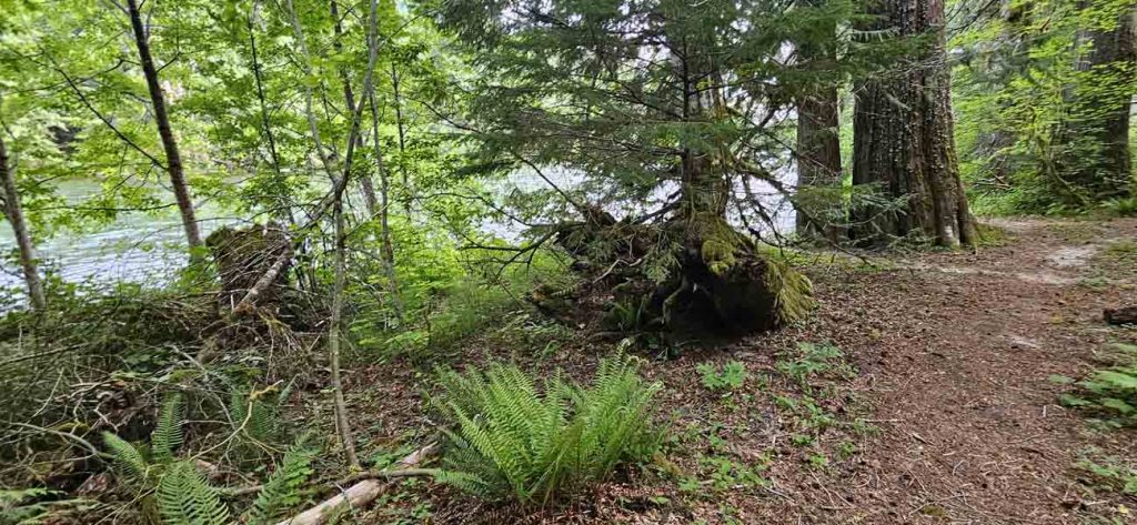 Der Platz ist sehr einfach, die 19 Stellplätze verteilen sich unter hohen Zedern, Hemlocktannen und Douglasien.