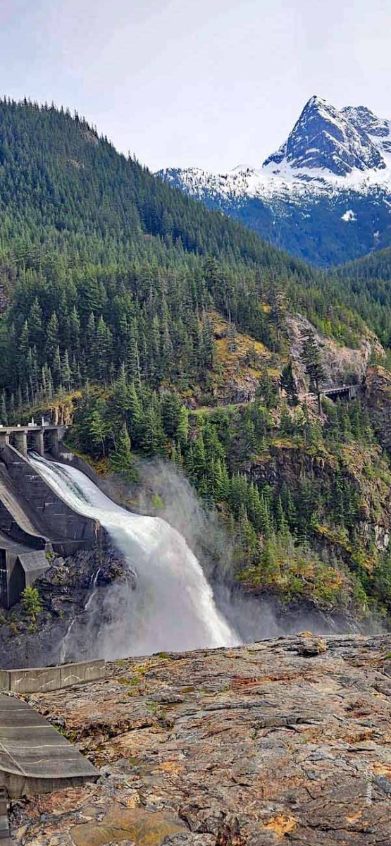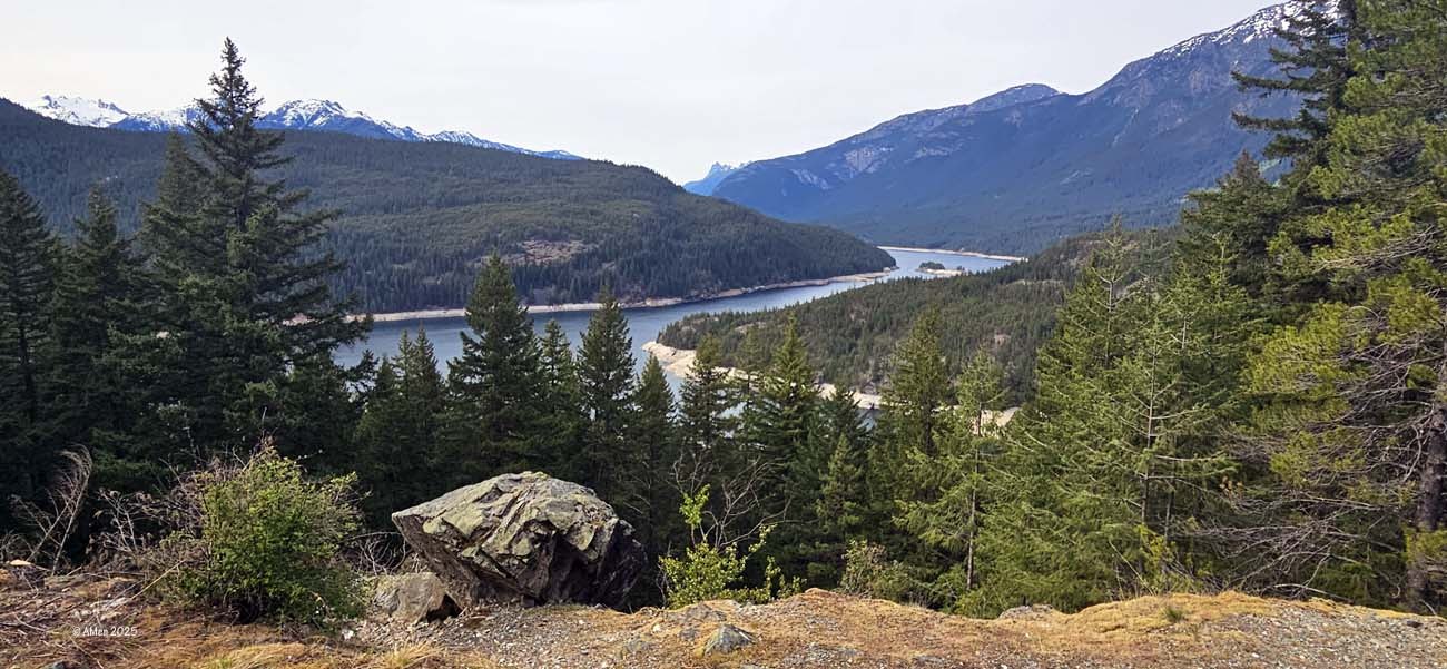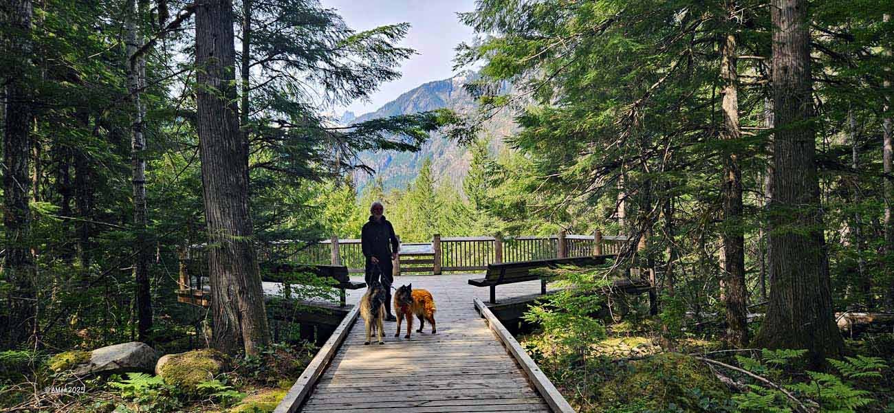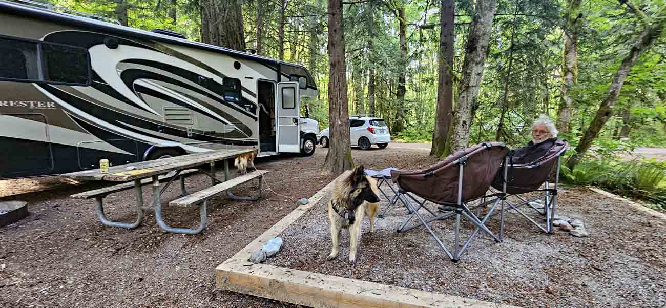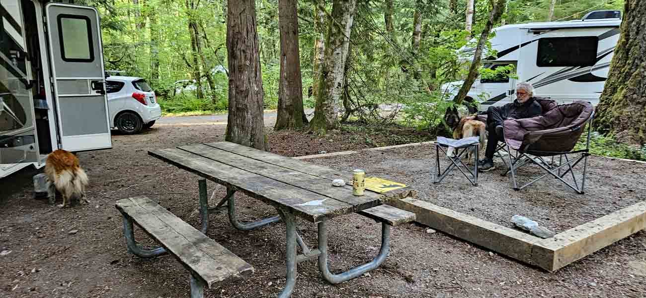 Auch hier bekamen wir einen schönen Platz mit Blick auf und gutem Zugang zum Skagit River, der aber eine zu starke Strömung hatte, so dass die Hunde nur mit den Pfoten reindurften.