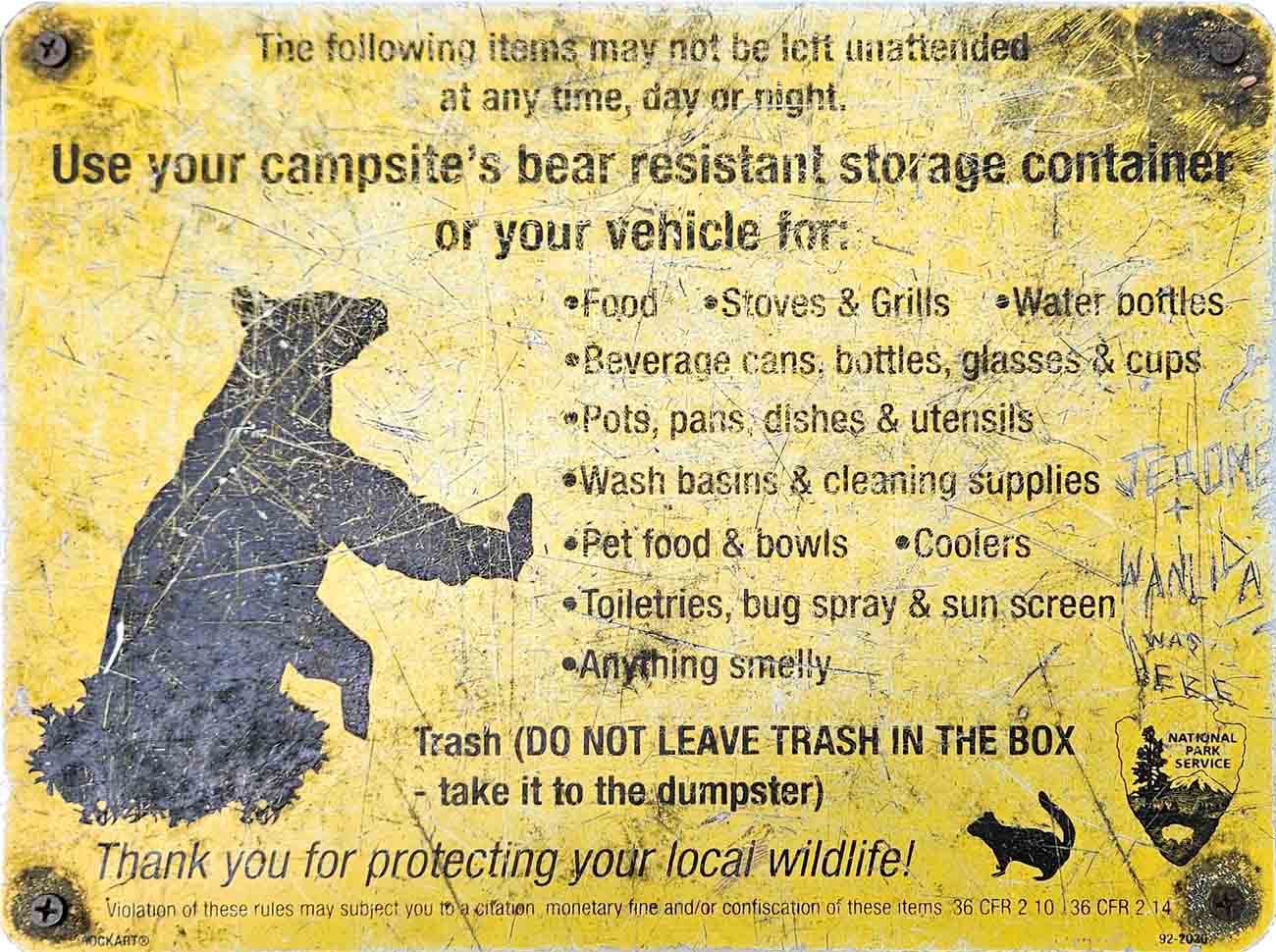 Saisonal gibt es Trinkwasser und die Plätze sind mit Bärenboxen, Picknicktischen und Feuerstellen ausgestattet.
