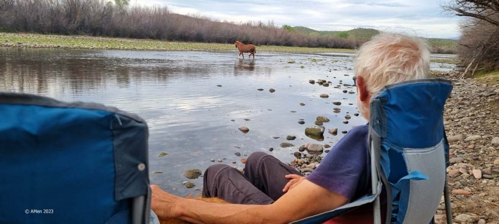 Das (der?) Coon Bluff ist eine von mehreren Stellen am Salt River, an der man gute Chance hat, Wildpferde zu sehen die morgens früh und in der Abenddämmerung an den Fluss kommen.
