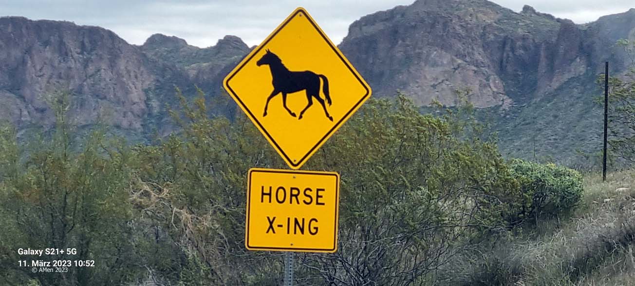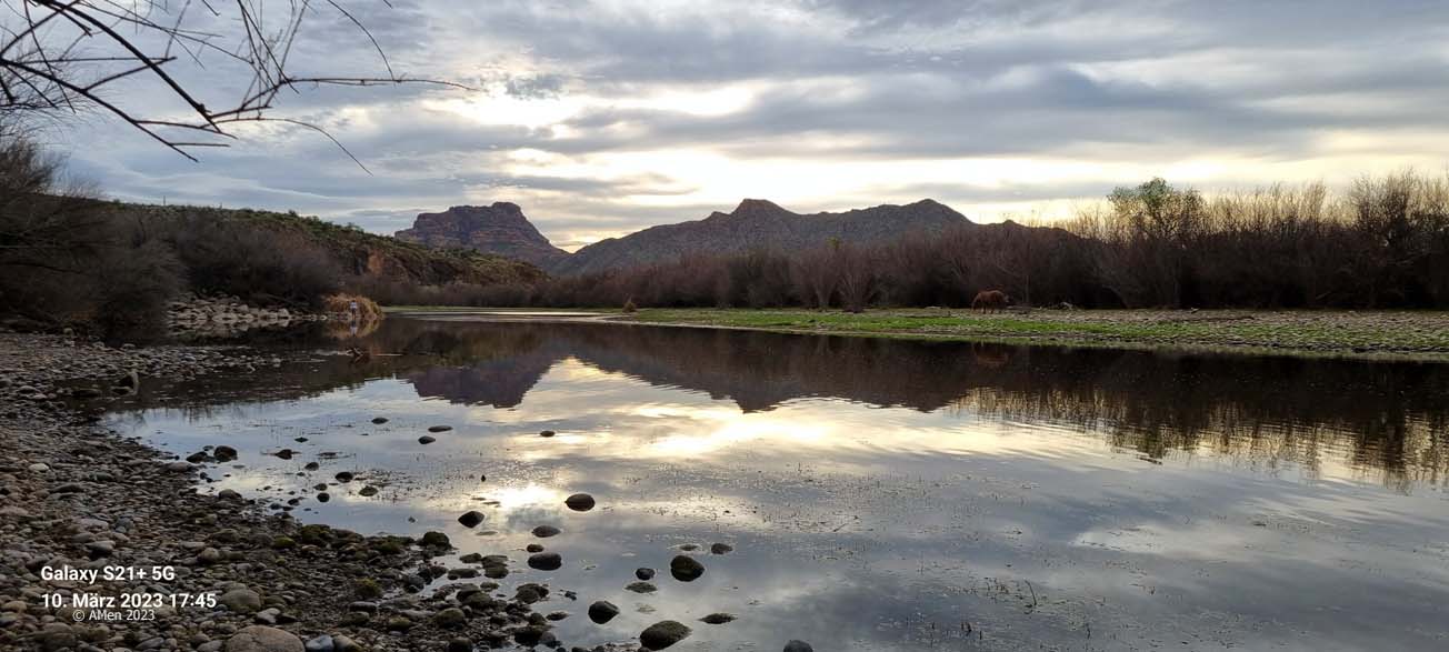 Das (der?) Coon Bluff ist eine von mehreren Stellen am Salt River, an der man gute Chance hat, Wildpferde zu sehen die morgens früh und in der Abenddämmerung an den Fluss kommen.