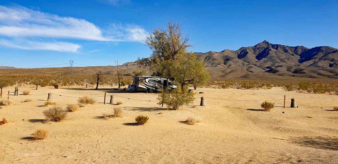| Hidden Hills | 34.7937, -115.6031 | 6.9 Miles from I-40 | Small RVs B,C | Uneven dirt road. |