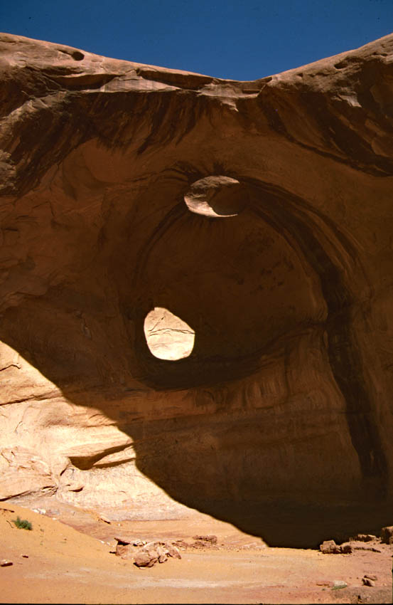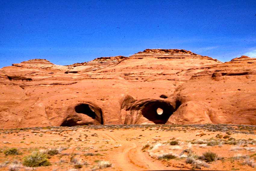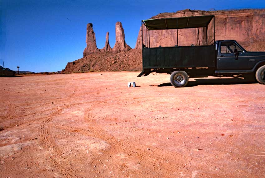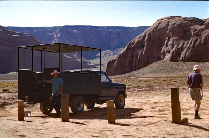 Die geführten Jeeptouren, um die 70 $ pro Person, führen zusätzlich an verschiedenen Stellen vorbei, die für den Normalverkehr gesperrt sind. Ich erinnere mich an die Tour ca. 1993 an einen Felsbogen und ein Hogan (siehe Bilder unten).