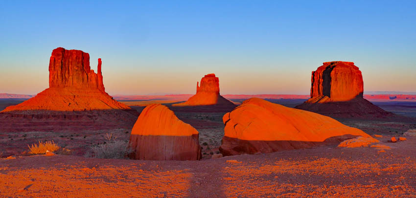 20 Dollar kostet der Eintritt in das Monument Valley; dafür darf man es zwei Tage lang besuchen. Das 2008 erbaute View Hotel macht sich nicht besonders schön im Tal, soll aber beim Sonnenaufgang einen fantastischen Ausblick auf die Felsen bieten – ebenso wie der sehr einfache, dafür aber recht teure View Campground, der aber Anfang März noch geschlossen war.
